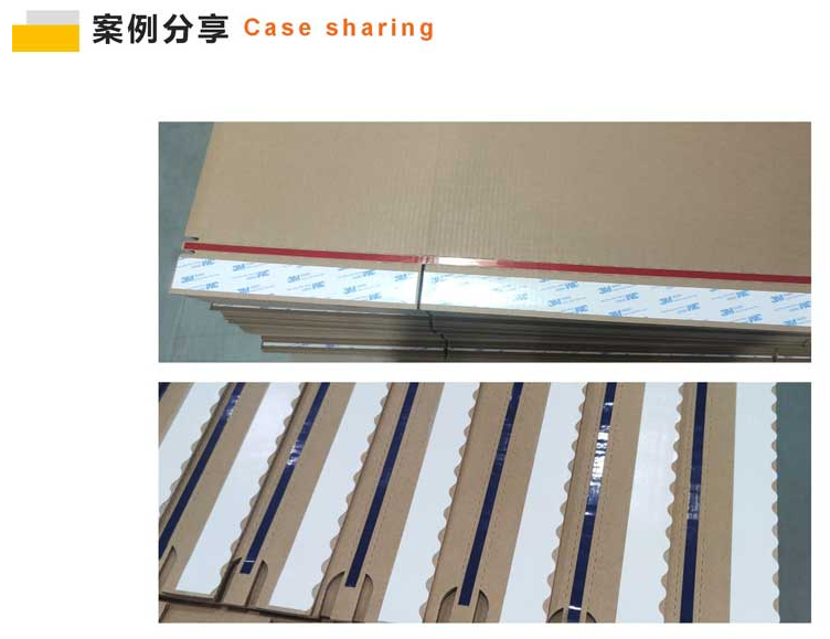 本機型可配置2個或3個貼膠頭,實現輸送方向同時貼多條膠帶,貼合長度可任意設定; 貼膠頭可根據用戶需求選配;