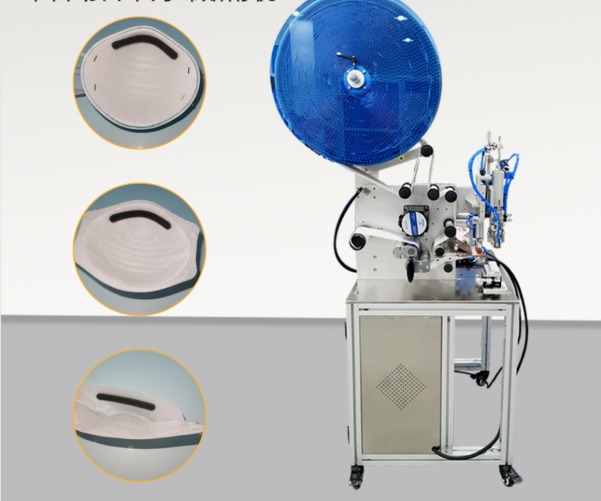 半自動口罩海綿條貼附機,已經取得國家實用新型專利,配置加高精度吸標頭,采用萬志新研發的取標機構,能有效解決人工貼條引起的變形、誤差等問題。設備從原料進入到成品輸出,半自動化作業,效率比人工操作高出幾倍,大大節省了人工成本。